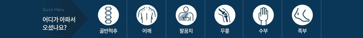 골반척추 어깨 팔꿈치 무릎 수부 족부