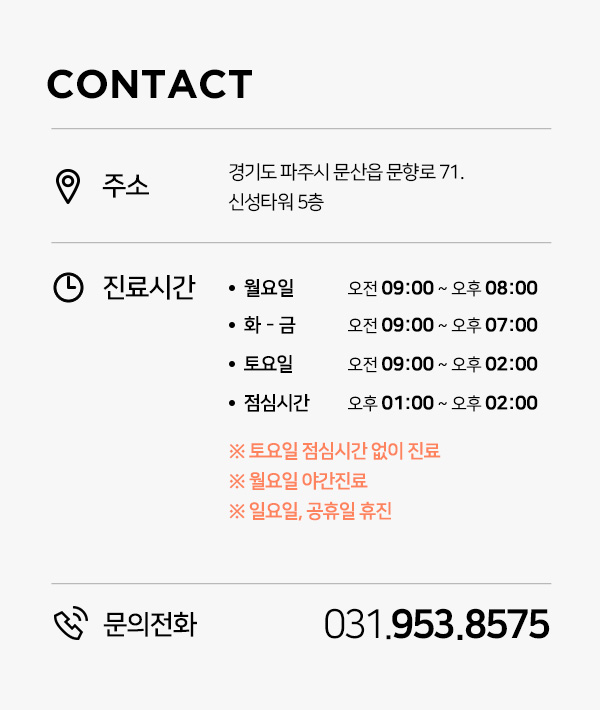 주소 : 경기도 파주시 문산읍 문향로 71. 신성타워 5층